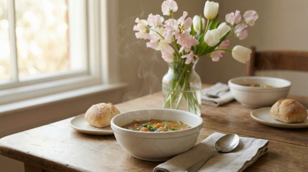 温かいスープは内臓を温め、春先に乱れやすい自律神経の切り替えを助ける役割も期待できます。