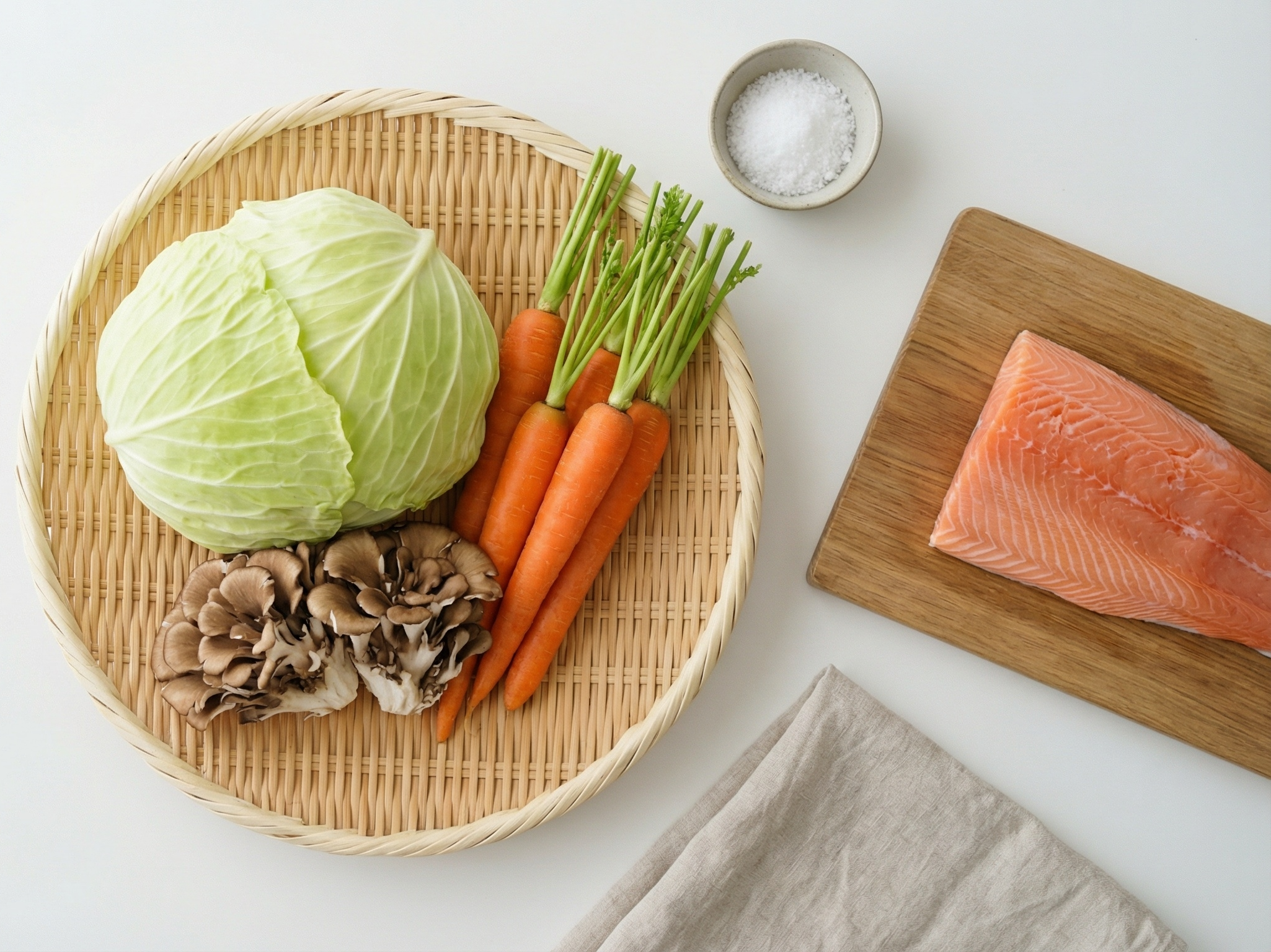 人参やキャベツ、鮭には、粘膜の健康維持を意識した栄養素が含まれています。