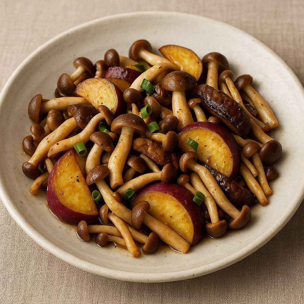 さつまいもは食物繊維が豊富で満腹感アップ。きのこはβグルカンで免疫力と腸内細菌の多様性をサポート。バターのコクで食べやすく、忙しい日もパパッと完成。