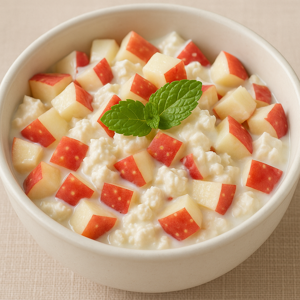 りんごのペクチンが腸内善玉菌のエサに。豆腐で良質な植物性タンパク質をプラス。ヨーグルトの発酵食品効果で腸内環境を整えます。朝食やおやつにもおすすめ。