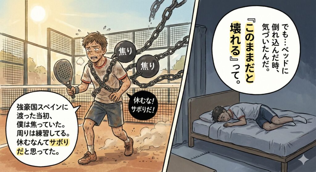 練習、トレーニング、移動、試合。 スペインはパデルの本場。 自分より強い選手だらけの環境に放り込まれ、 アドレナリンだけで走り続けていた時期がありました。