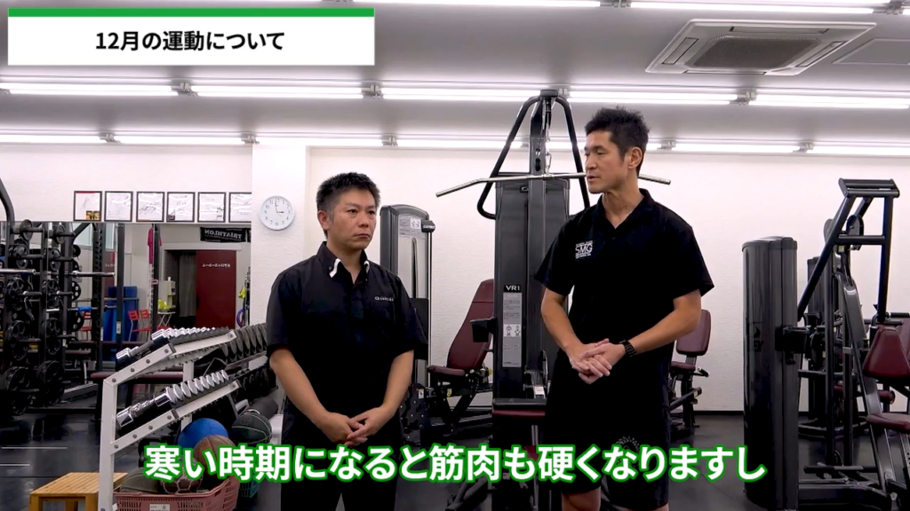 まず12月は気温が寒い時期にはなってくるので、当然、怪我している人がリハビリを進めていく中でも、夏場と比べて寒い時期になると筋肉も硬くなりますし、やっぱり動きづらくなる時期なんですね。