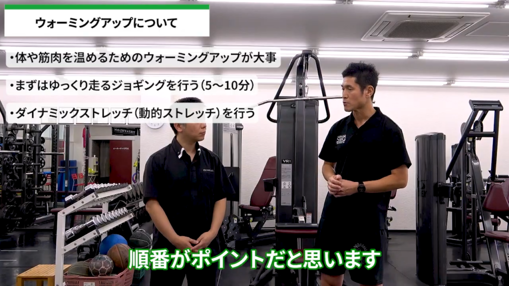 なので、まずはしっかりウォーミングアップをしてほしいなというところになります。
