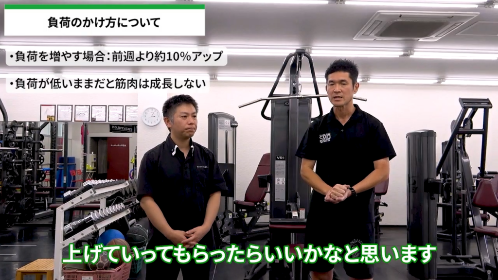 しっかり、その重さであったり、運動量というのを少しずつ、前の週よりちょっとずつ、ちょっとずつという形で。