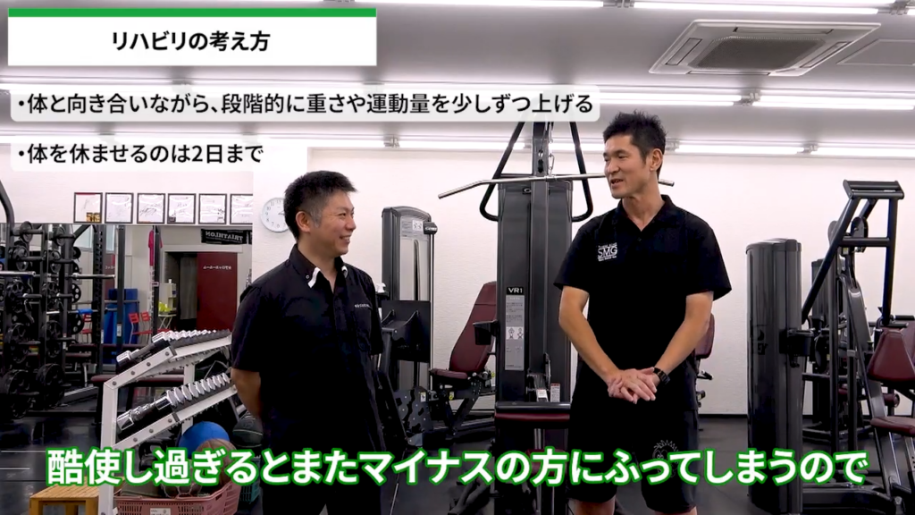 当然、やり過ぎるのは、体に対して怪我されている方は負担がかかるので、しっかりリフレッシュ、リカバリーするという意味では、休みも必要になります。
