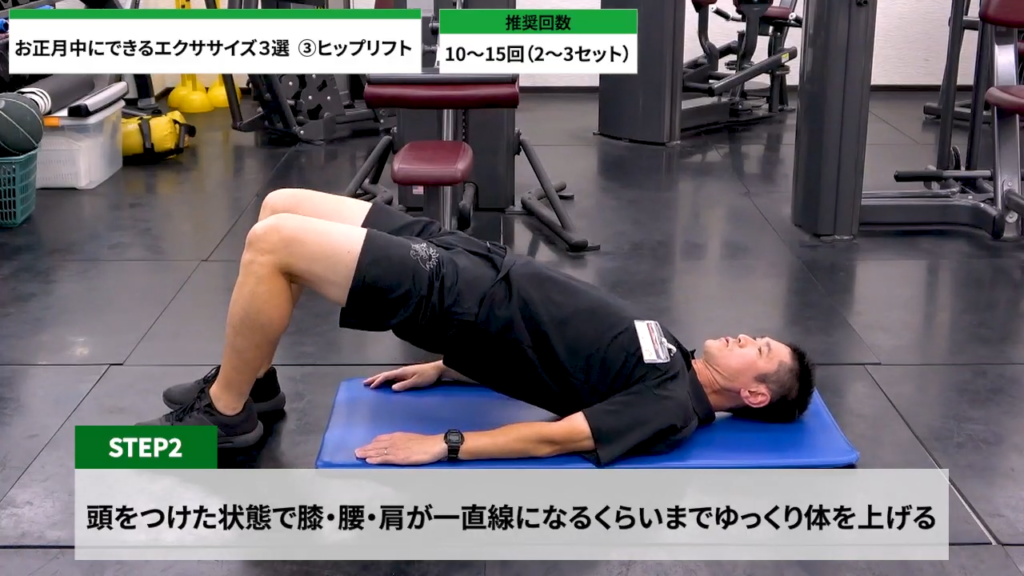 3つ目のエクササイズは、ヒップリフトという種目です。