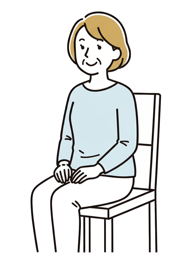 椅子に浅く座り、腰に手を添え、骨盤を少しだけ前に起こす。