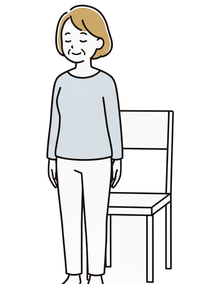 背中を反らさず丸めず、「積み木をひとつ立て直す」イメージで。
