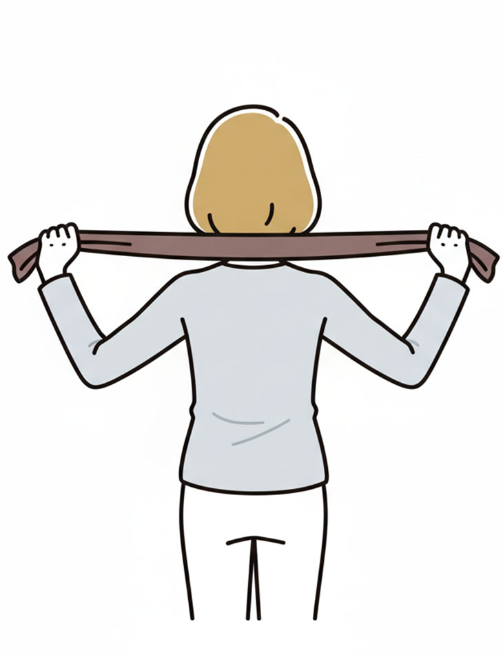 タオルを軽く引きながら、肩をすくめず背中の中央が働く感覚をつかむ。