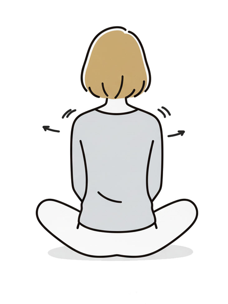 座ったまま背骨を左右にゆらし、冬で固まりやすい背中・肋骨まわりをゆるめる。