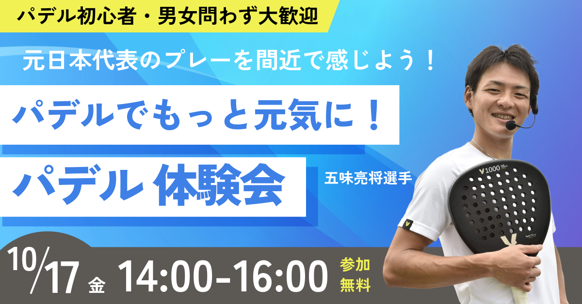 わたしたちは、五味選手の「日本のパデルから、日本中をさらに元気で活力あふれる世界に!」という情熱的な目標を共有し、このイベントを通じて、地域社会に笑顔と活力を届けることを目指します。