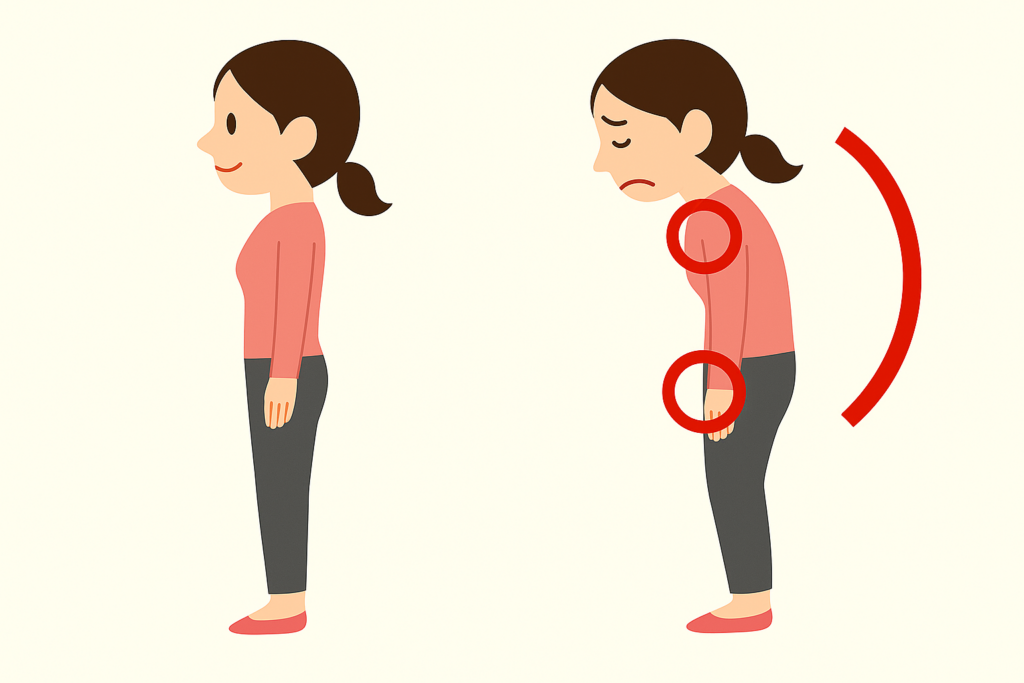 私たちは重い頭や⾝体を⽀えて家事や仕事をしており、猫背になりやすい環境で⽣活をしています。