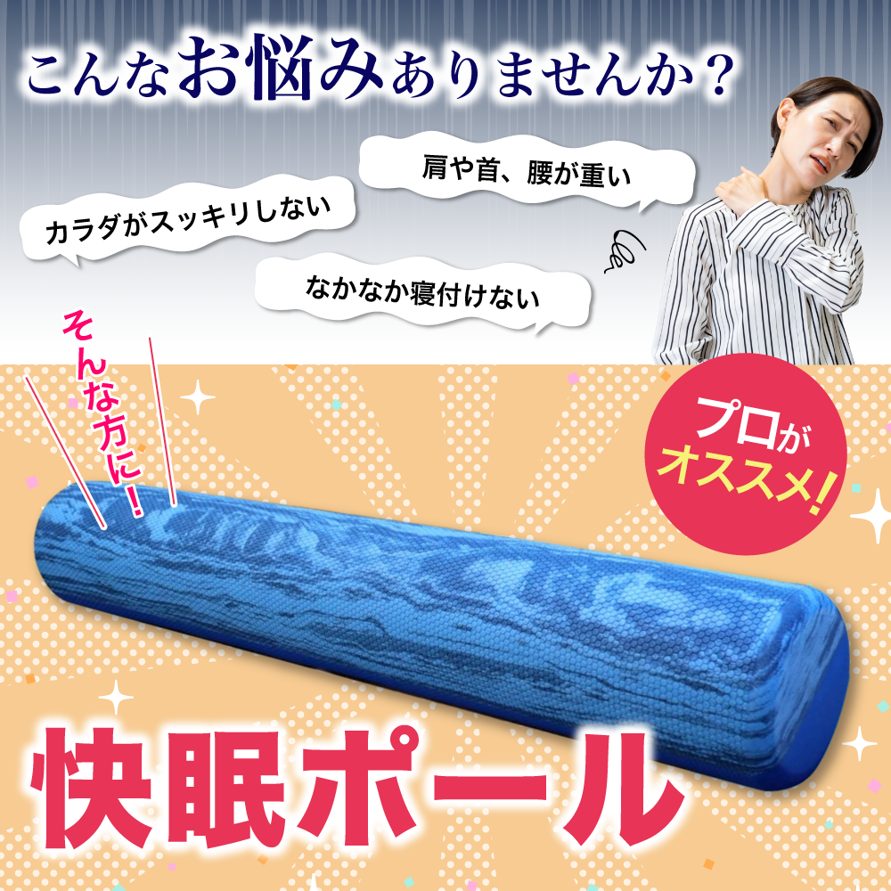 睡眠でお困りの方は、快眠ポールで寝る前にリラックスされてはいかがでしょうか。